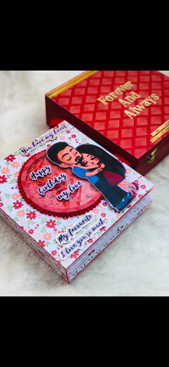 The outer box adds an elegant touch, while the inside explodes into love — decorated pages, sweet quotes, and space for photos that tell your story together. It’s thoughtful, creative, and truly unforgettable.